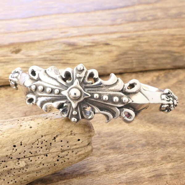 緻密な彫金が細部にまで施されたゴシック定番のクロスを掘り込んだバングル。